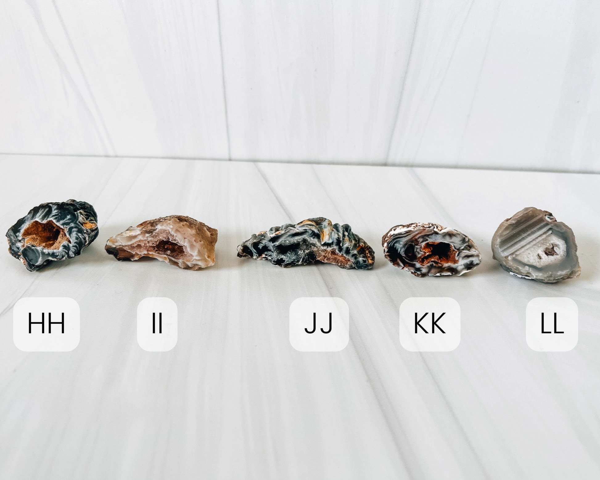 Choose your own mini Agate Geode! Each geode is unique and ranges in size, color, and shape from 1 inch to 2.5 inches.