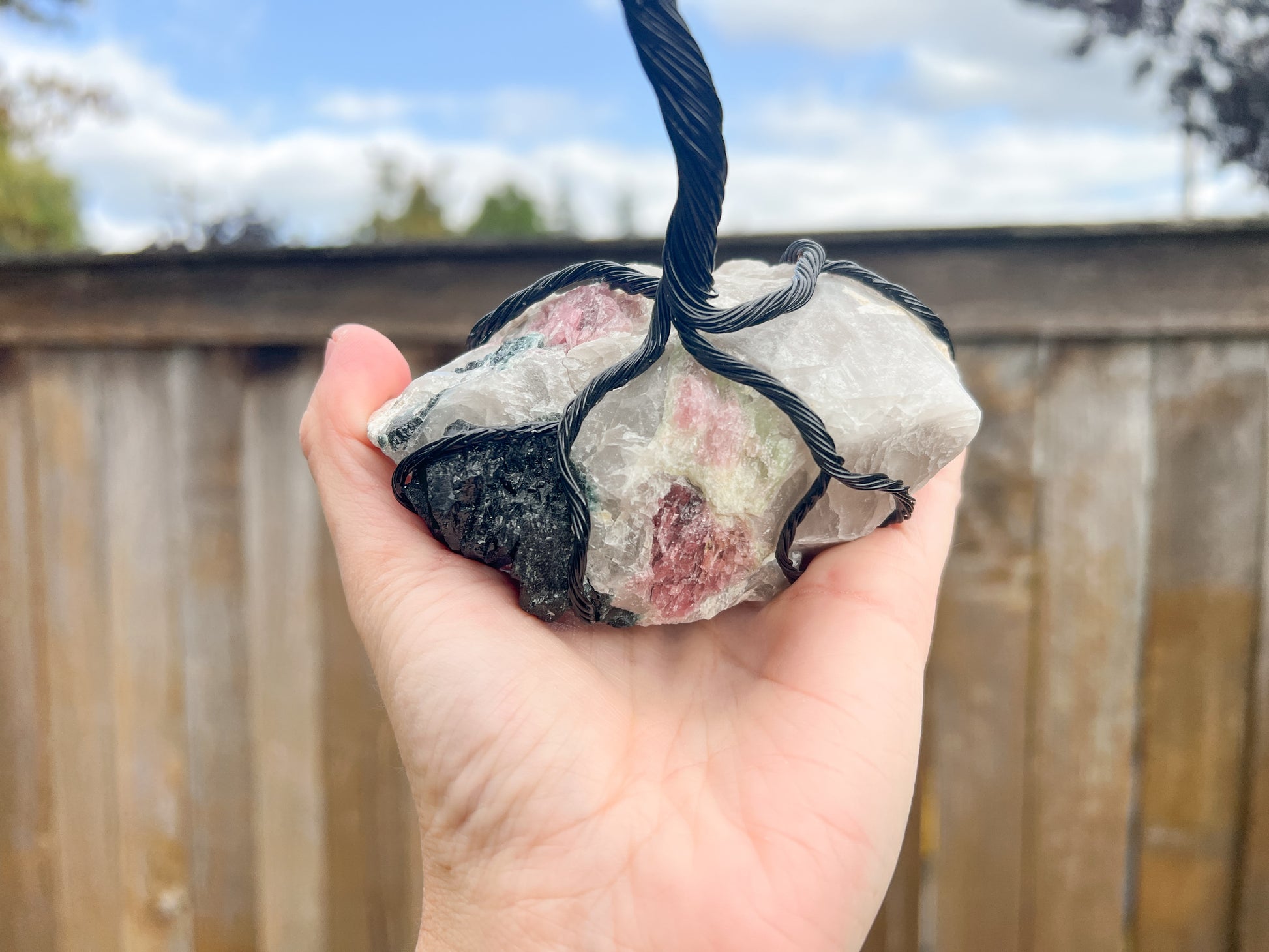Rooted in a tourmaline in matrix base, a stone of protection and grounding to balance Aries’ dynamic fire, and finished with bold black wire to honor the fire element, this piece embodies strength and passion. A meaningful gift or display for anyone born under Aries or drawn to its empowering energy.