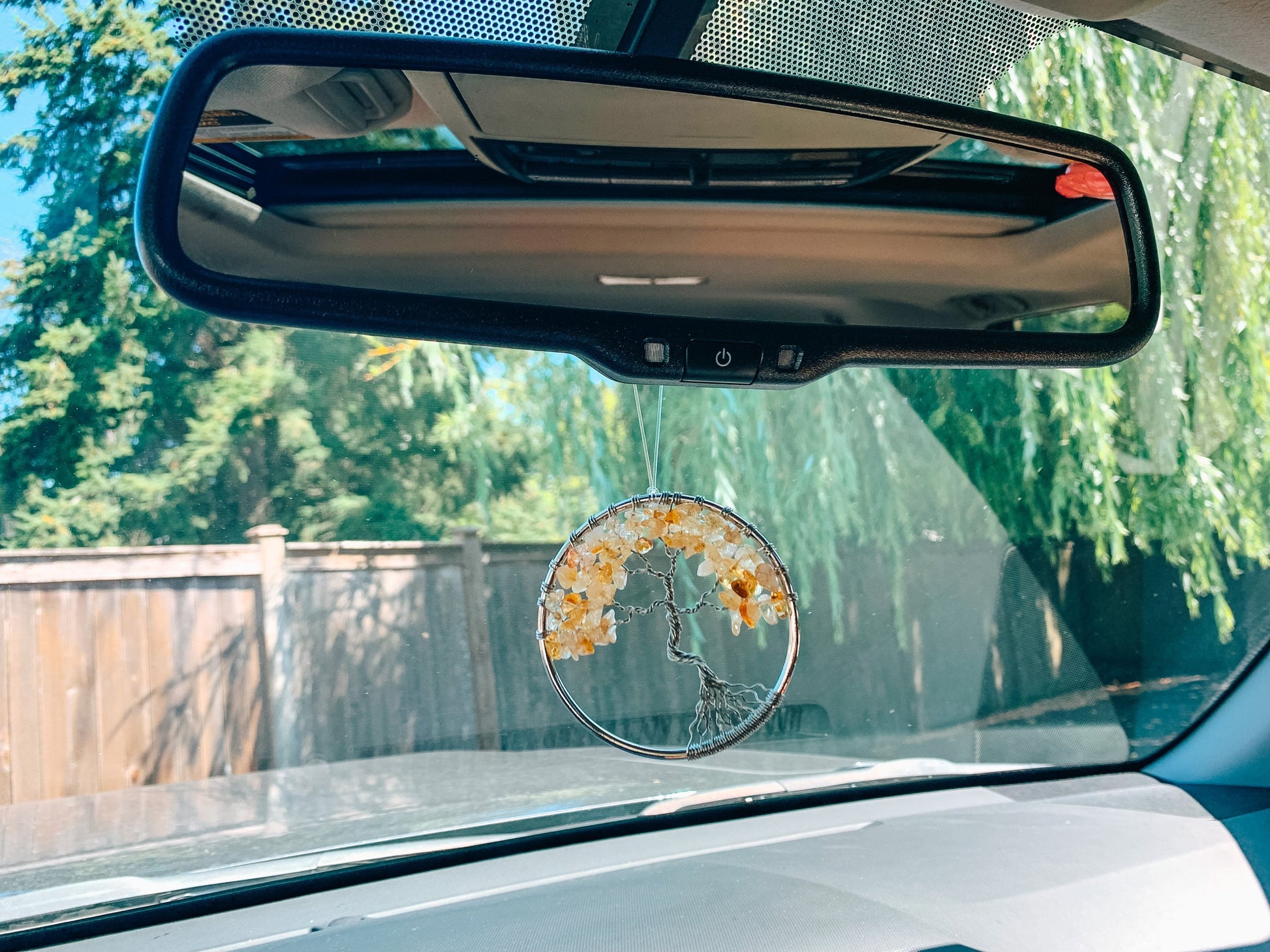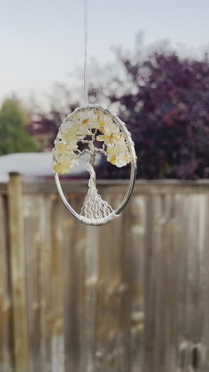 Citrine Tree of Life ornament that is great for many occasions! Can be used as a car rear view mirror charm, Christmas tree ornament, or as a window or wall hanging.