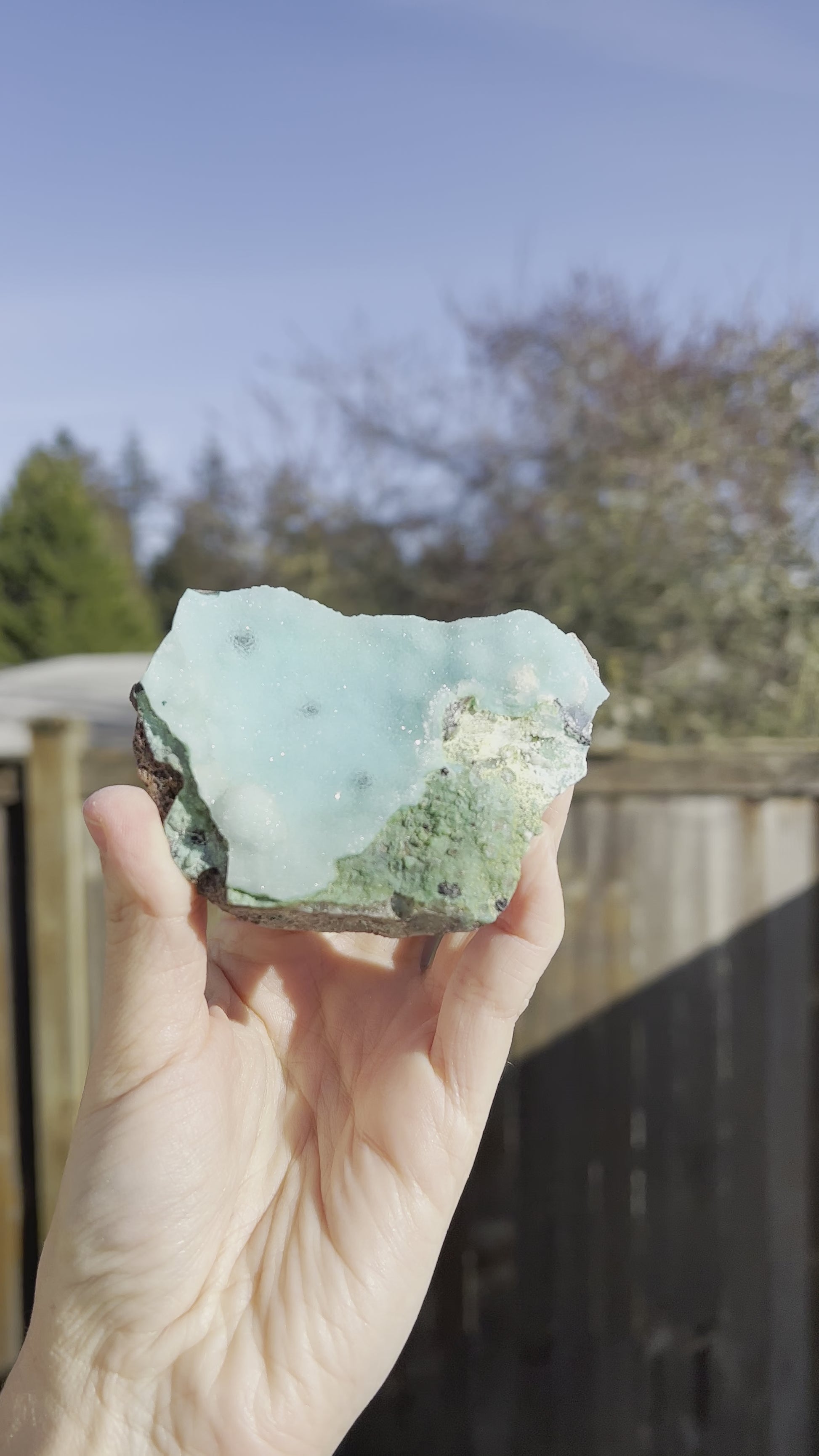Gorgeous druzy Quartz covered Chrysocolla raw chunk from the Democratic Republic of Congo that will make the perfect addition to any space or as a gift to a crystal lover!