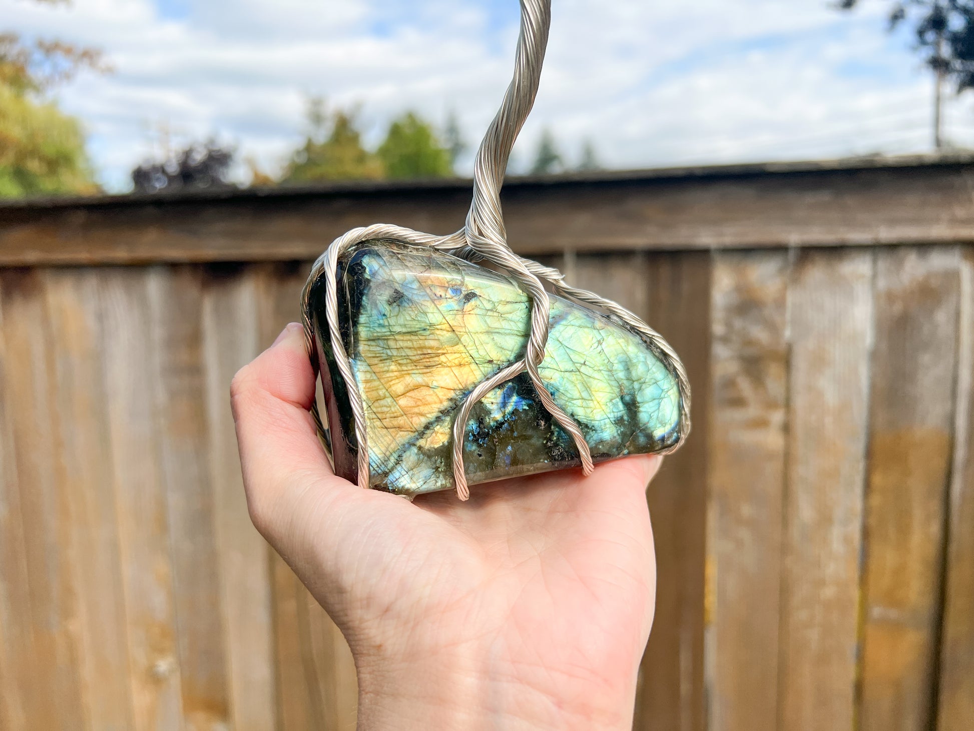 Rooted in a labradorite base, a stone that strengthens intuition, protection, and spiritual connection, perfectly supporting Pisces’ sensitive, imaginative, and compassionate nature, and finished with silver wire to honor the water element, this piece embodies inspiration and emotional harmony. A meaningful gift or display for anyone born under Pisces or drawn to its intuitive, creative energy.