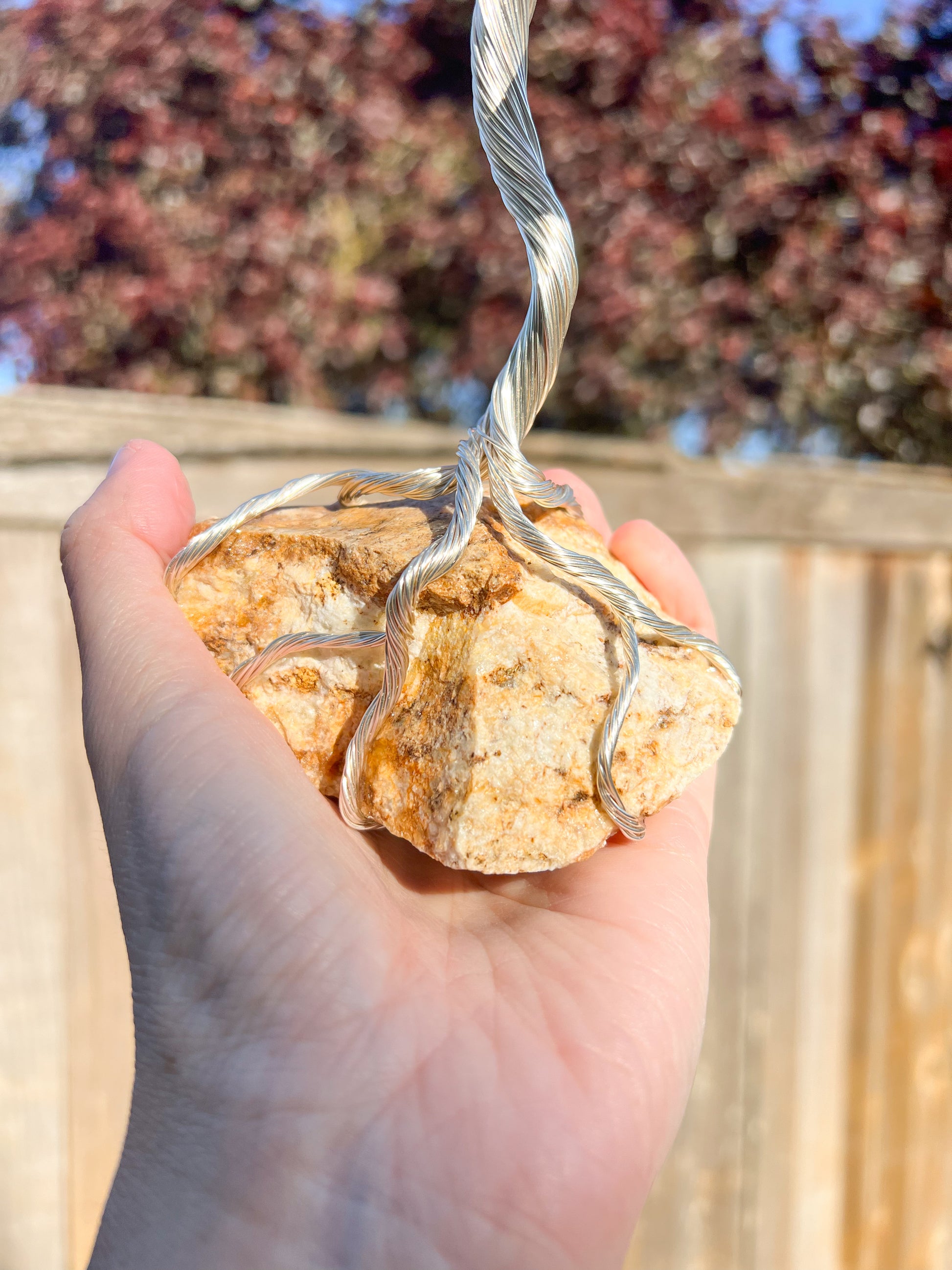 This one-of-a-kind Rainbow Crystal Tree is handmade with tarnish resistant silver plated copper wire, attached to a natural rock base found locally in Washington State near the Skagit River. The tree's leaves are made up of 8 different tumbled stones, reflecting all the colors of the rainbow and the 7 different chakras. Bring nature's beauty into your home with this unique piece.