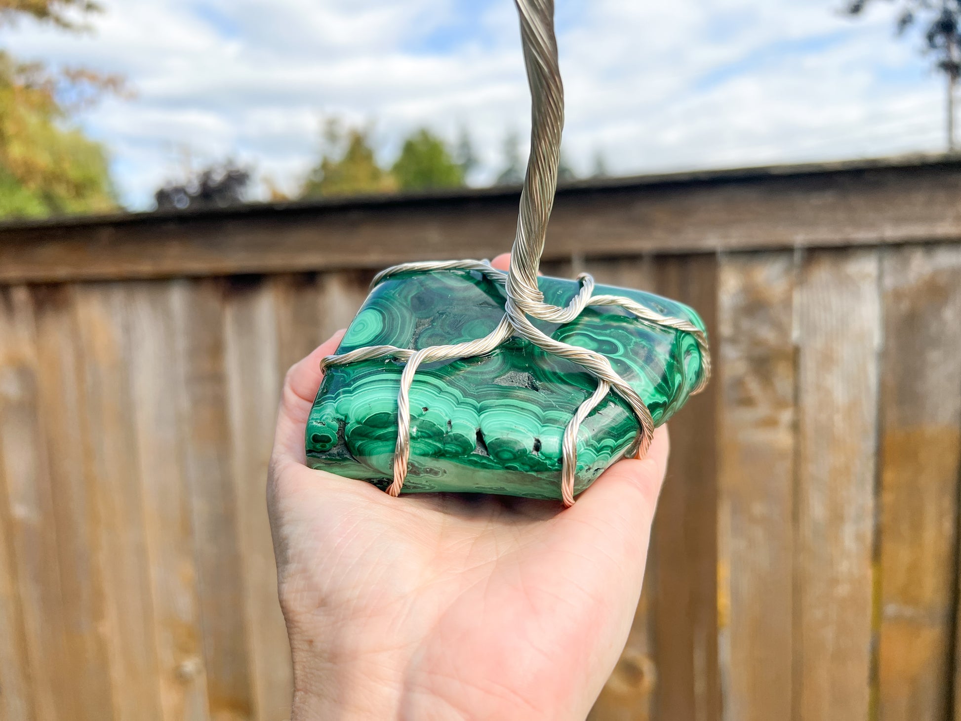 Rooted in a malachite base, a stone that supports transformation, emotional healing, and empowerment, perfectly complementing Scorpio’s passionate, introspective, and resilient nature, and finished with silver wire to honor the water element, this piece embodies depth and renewal. A meaningful gift or display for anyone born under Scorpio or drawn to its transformative, intuitive energy.