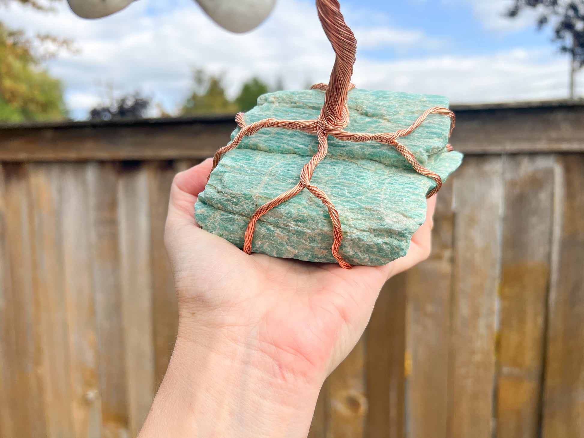 Rooted in an amazonite base, a stone that fosters calm, communication, and truth, perfectly complementing Virgo’s analytical, thoughtful, and nurturing nature, and finished with warm copper wire to honor the earth element, this piece embodies balance and clarity. A meaningful gift or display for anyone born under Virgo or drawn to its grounded, insightful energy.